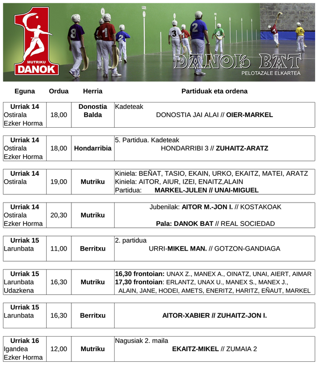 Cartelera de Danok Bat del fin de semana.Visualizando la imagen encontrarás todos los partidos.https://www.mutriku.eus/es/noticias/cartelera-de-danok-bat-del-fin-de-semana-2https://www.mutriku.eus/es/noticias/cartelera-de-danok-bat-del-fin-de-semana-2/@@download/image/Danok Bateko asteburua 161015.png