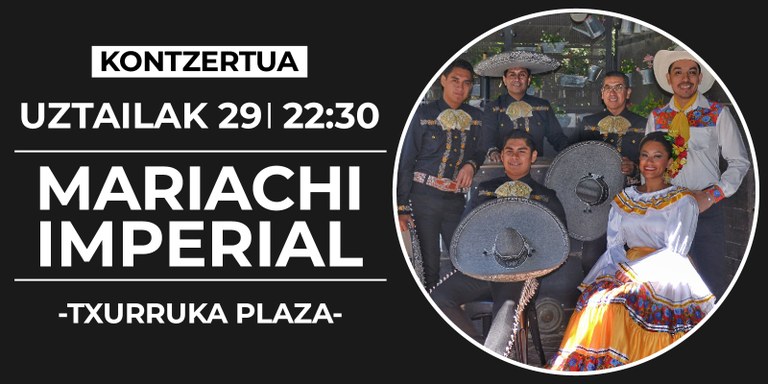 Mariachi Imperial https://www.mutriku.eus/eu/agenda/mariachi-imperial Mariachi Imperial 2023-07-29T22:30:00+02:00 2023-07-29T23:59:59+02:00 Mariachi Imperial Noiz 2023/07/29 22:30 Non Txurruka plaza Mariachi Imperial https://www.mutriku.eus/eu/agenda/mariachi-imperial https://www.mutriku.eus/eu/agenda/mariachi-imperial/@@download/image/mariachiak 3_Mesa de trabajo 1.jpg