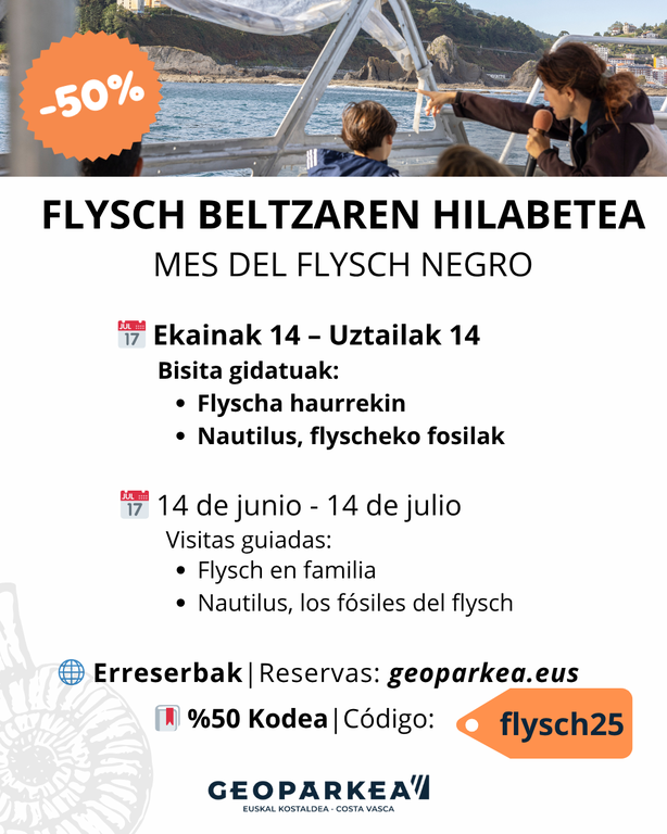 Aipatutako bisitek %50eko deskontu izango dute hilabetez, ekainaren 14tik uztailaren 14ra. Erreserba Geoparkearen webgune ofizialaren bidez egin beharko da "flysch25" sustapen-kodea erabiliz.