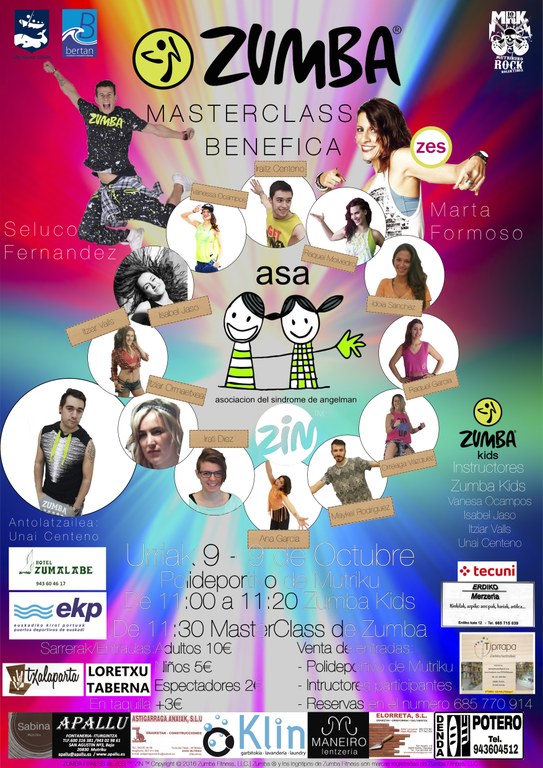 Unai Centenok antolatuta eta udalaren laguntzarekin, Angelman Sindromearen Elkartearen aldeko Zumba Master Class Benefikoa ospatuko da udal kiroldegian urriaren 9an, 11.00etan hasita. Umeentzako zein helduentzat zuzendutako saioak izango dira Zumba munduko profesional onenen eskutik.
