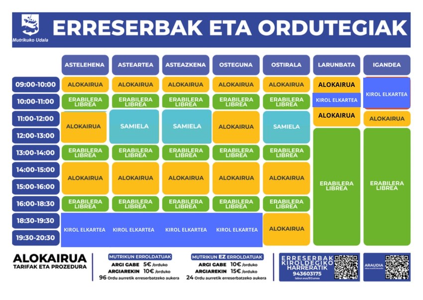 - Ordu horiek erreserbatzeko Mutrikuko kiroldegiarekin harremanetan jarri beharko da